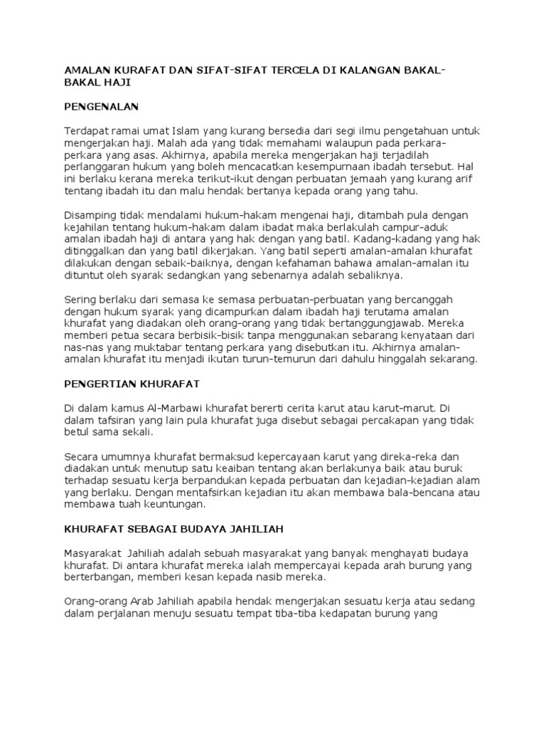 Amalan Kurafat Dan Sifat Sifat Tercela Di Kalangan Bakal Bakal Haji