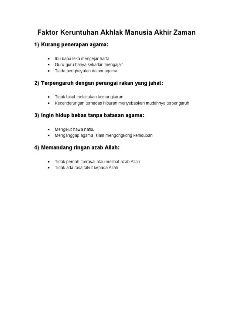 Faktor Keruntuhan Akhlak Manusia Akhir Zaman 1