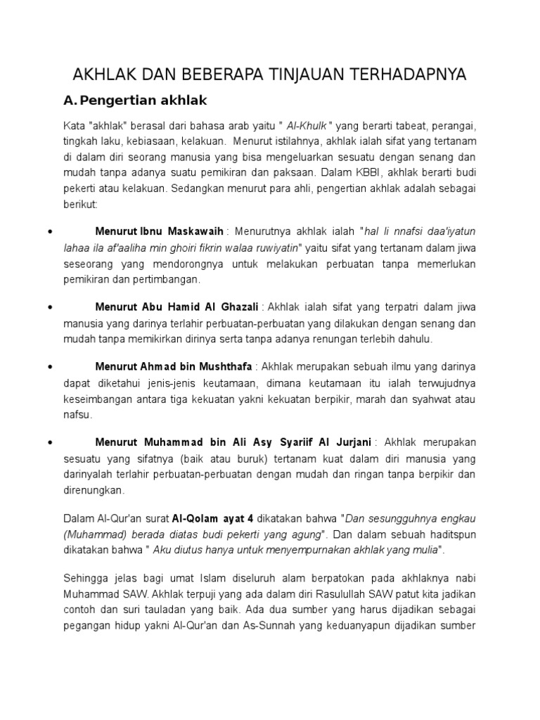 Akhlak Dan Beberapa Tinjauan Terhadapnya