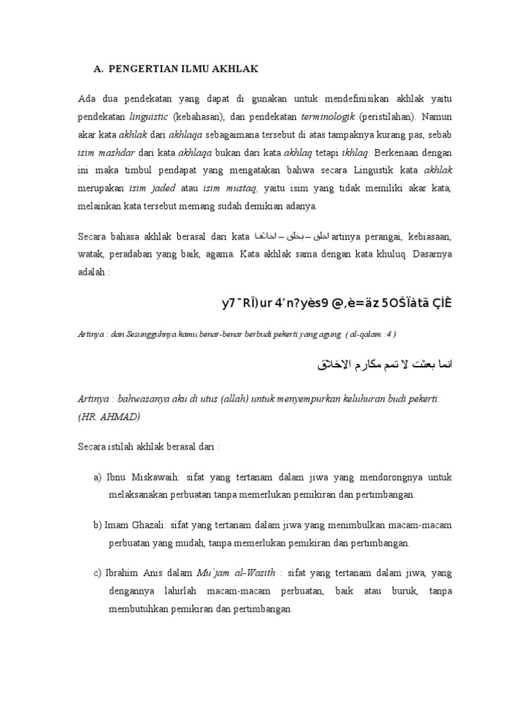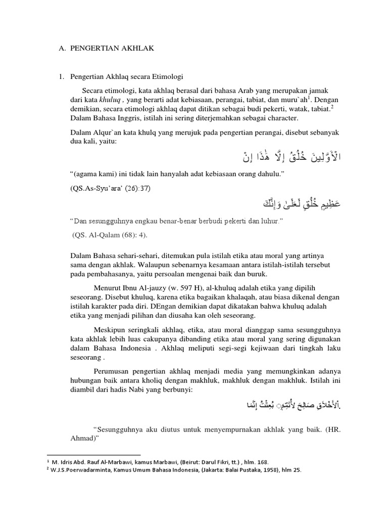 542020 Secara bahasa bentuk jamak dari akhlak adalah khuluq yang memiliki arti tingkah laku perangai dan tabiat.